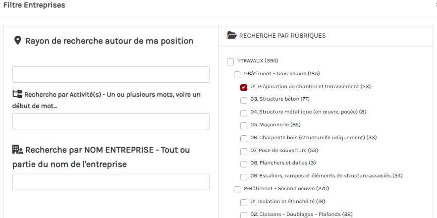 • Par nom d’entreprise : retrouvez directement un prestataire identifié.